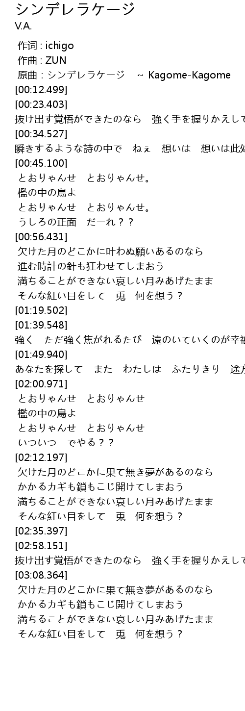 | [00:00.000] | 原曲:シンデレラケージ ~ Kagome-Kagome |