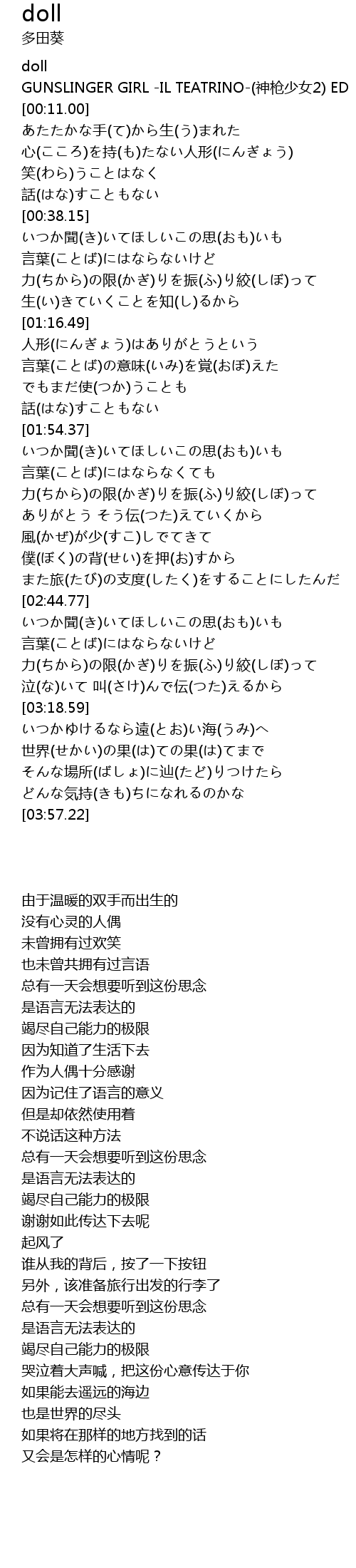 | [00:23.52] | 心(こころ)を持(も)たない人形(にんぎょう) |