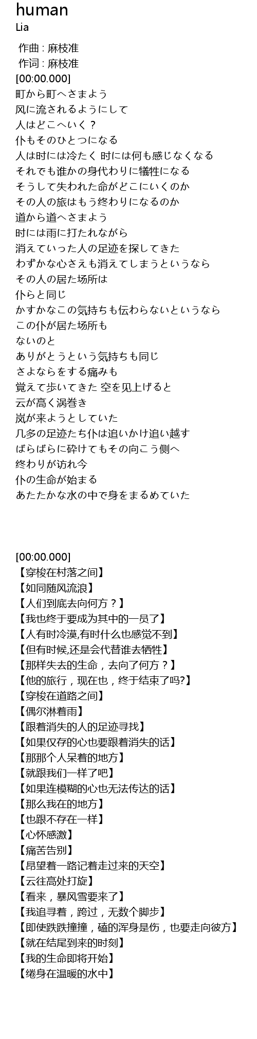 | [00:29.760] | 人は时には冷たく 时には何も感じなくなる |