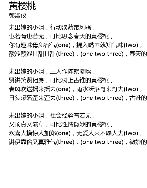 | Song | 黄樱桃 |