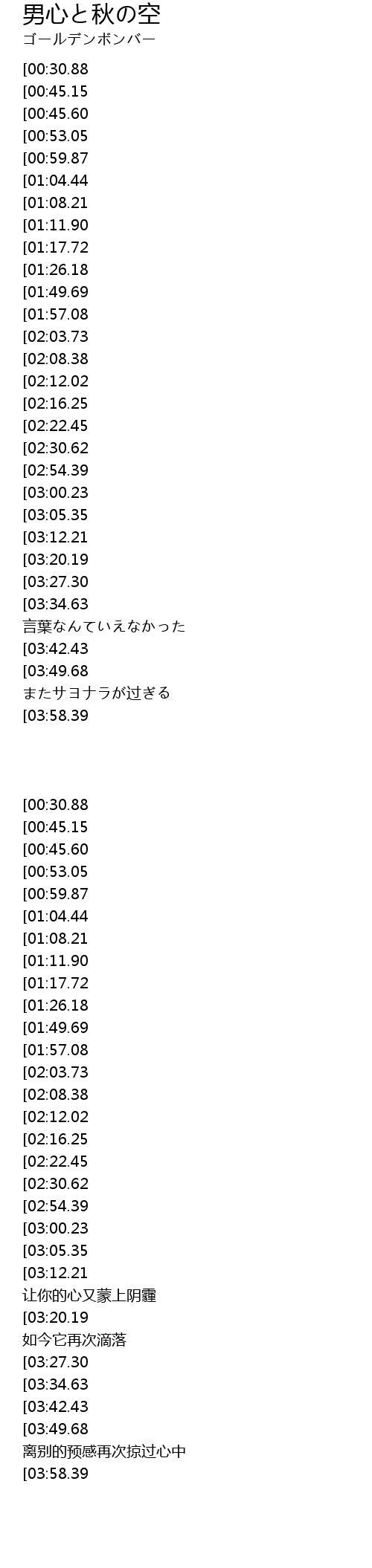 | [03:42.43][03:34.63] | 愛の歌に良く出てくる 言葉なんていえなかった |