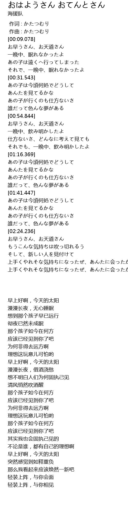 | [02:41.633] | 上手くやれそな気持ちになったぜ、あんたに会ったから |