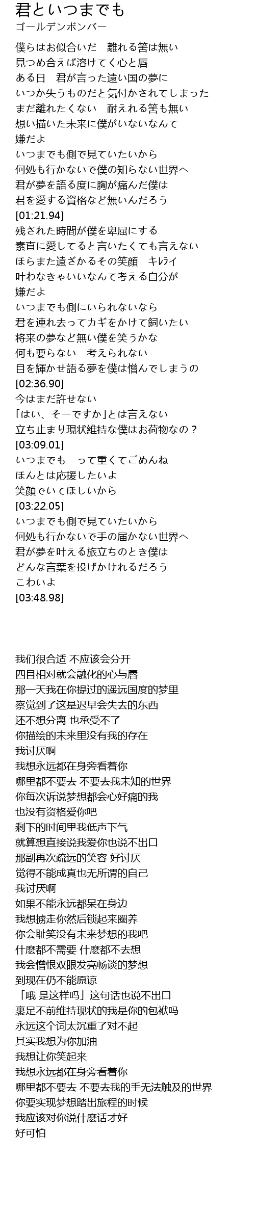 | [01:02.34] | 何処も行かないで僕の知らない世界へ |