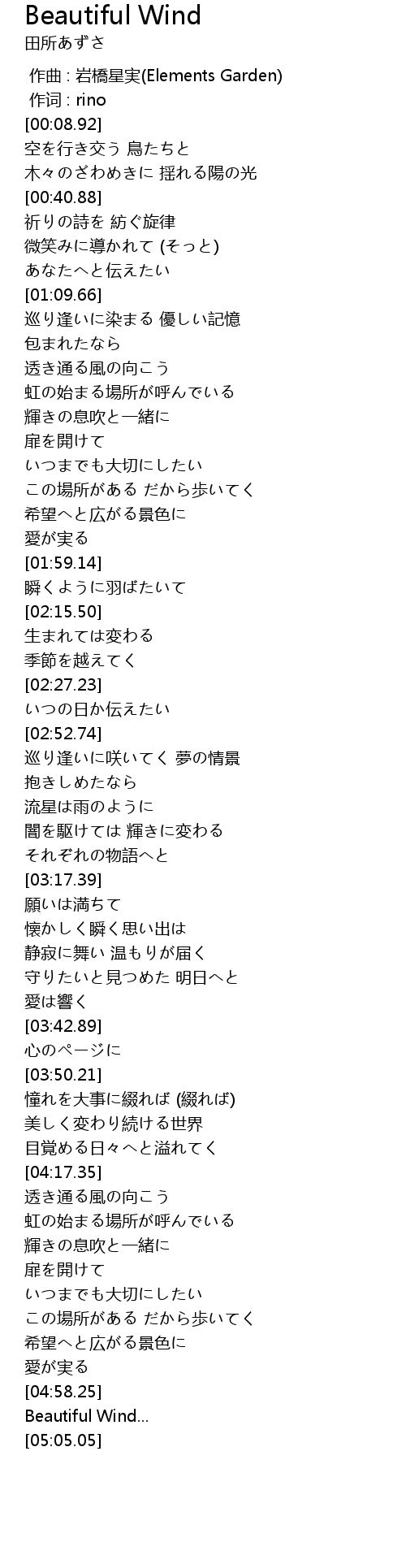 | [05:01.35] | Beautiful Wind... |