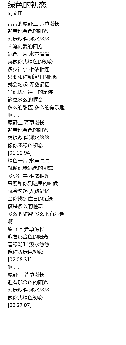 | [00:27.74] | 绿色一片 水声涓涓 |