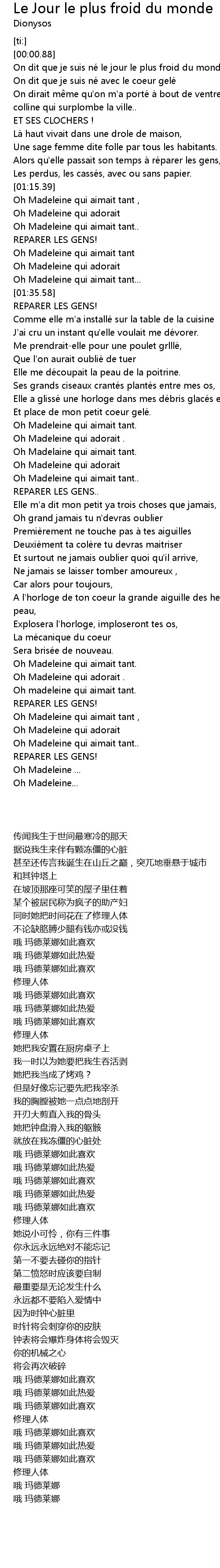 | [00:24.04] | On dit que je suis né le jour le plus froid du monde |