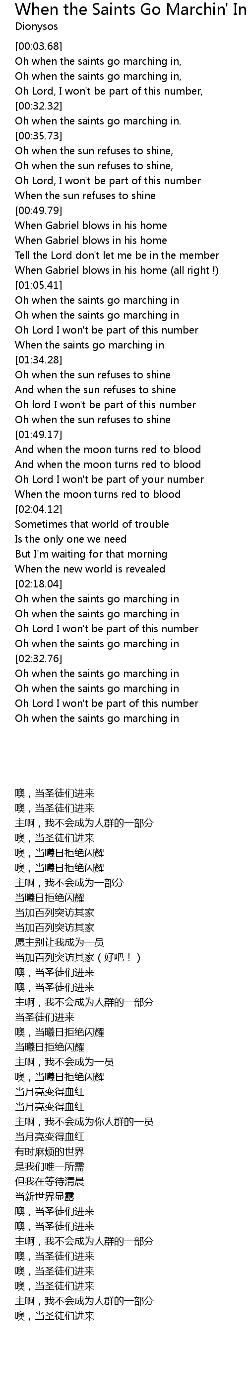 Oh when the saints go marching in. |