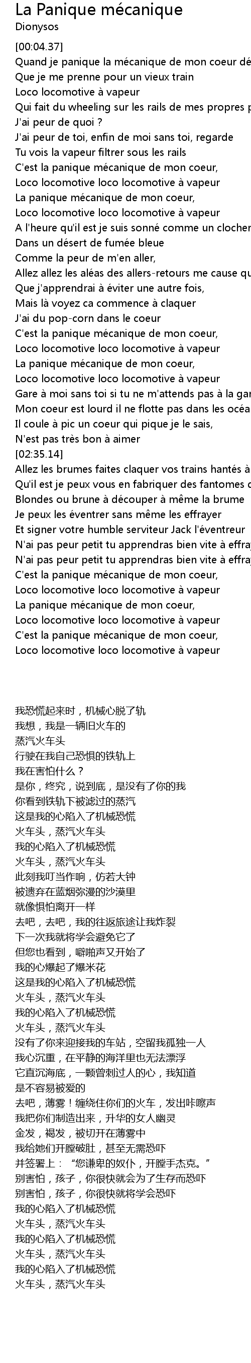 | [03:36.38] | C'est la panique mécanique de mon coeur, |