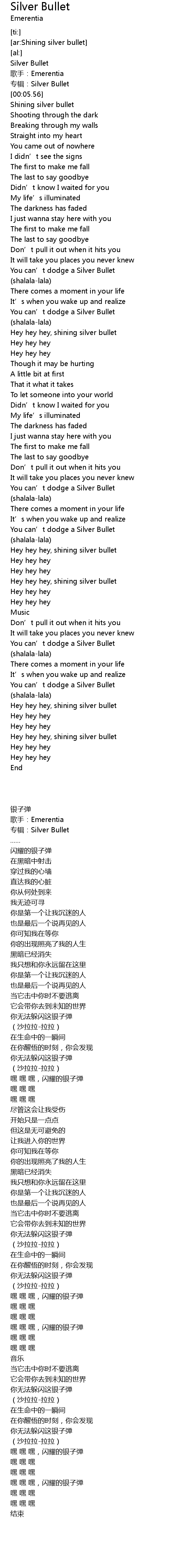 | [00:04.34] | zhuan ji: Silver Bullet |