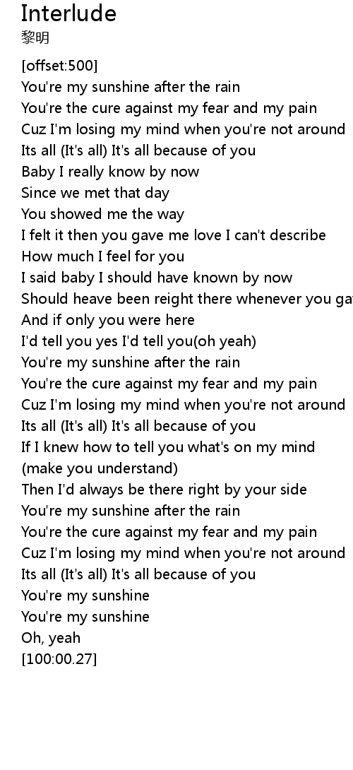 | [100:00.00] | You're my sunshine after the rain |