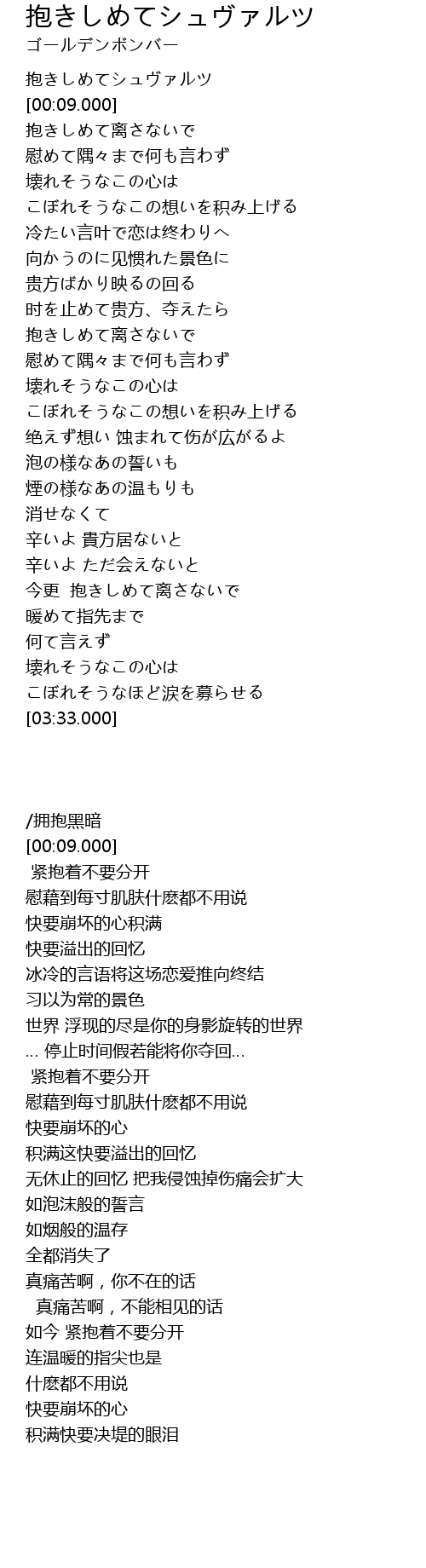 | [00:01.000] | 抱きしめてシュヴァルツ |