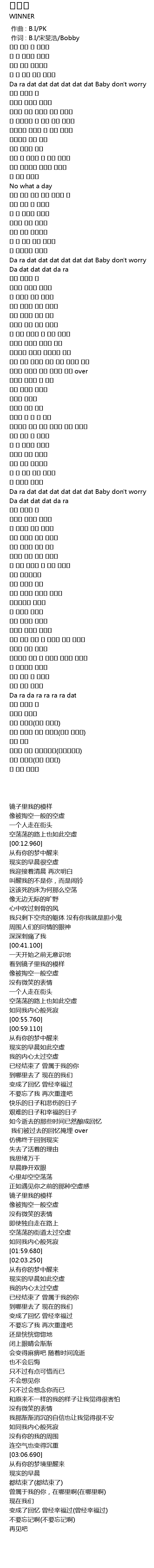 | [00:00.490] | 作词 : B.I/宋旻浩/Bobby |