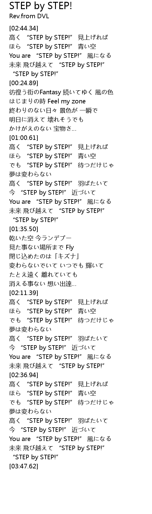 | [02:32.81] | 未来 飛び越えて “STEP by STEP!” |