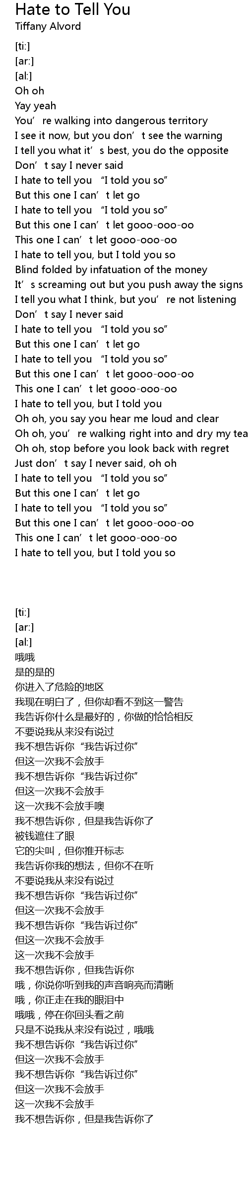 | [00:34.91] | I hate to tell you “I told you so” |
