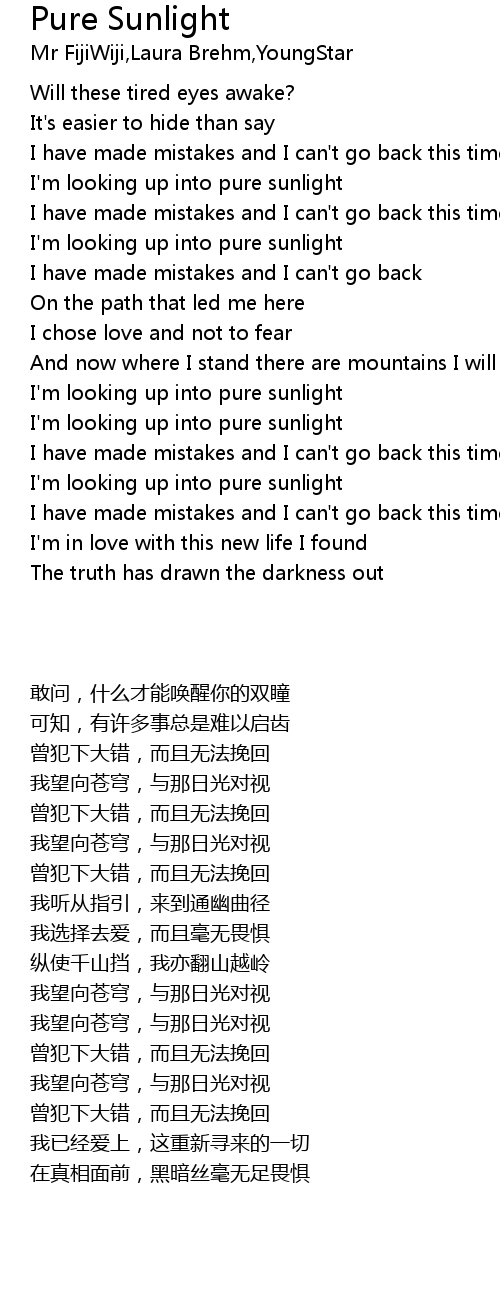 I'm looking up into pure sunlight |