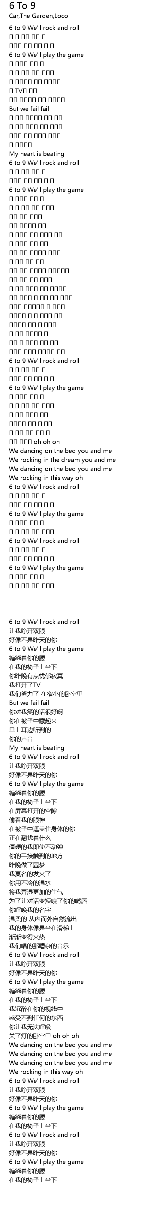 | [00:00.87] | 6 to 9 We'll rock and roll |