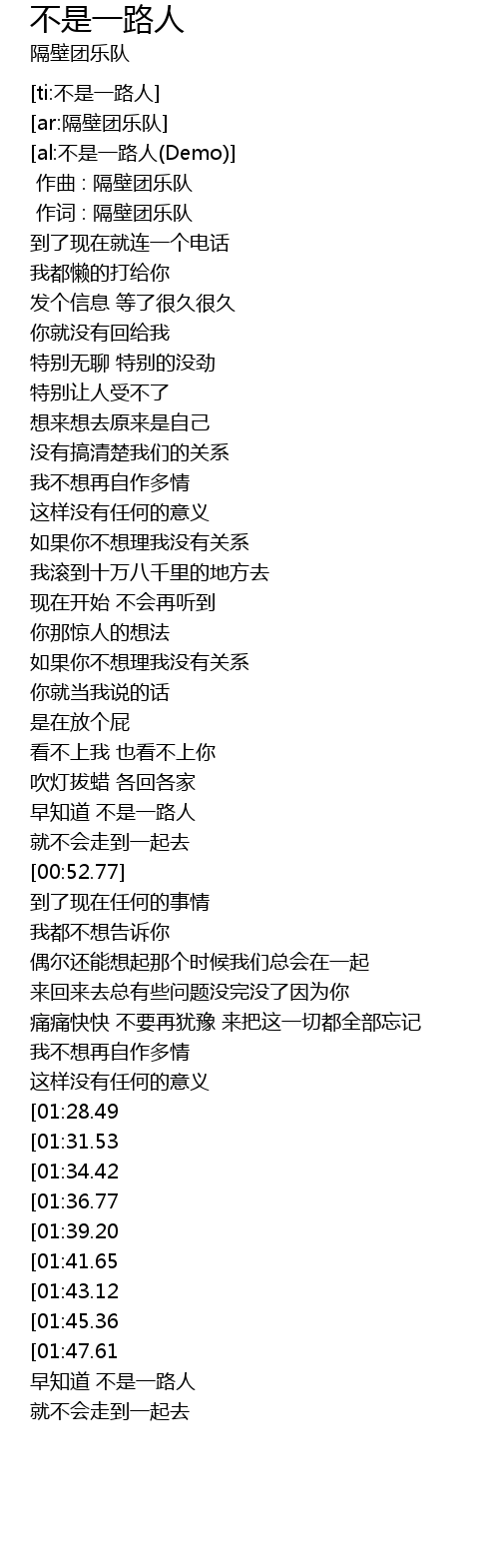 | [00:00.00] | 作词 : 隔壁团乐队 |
