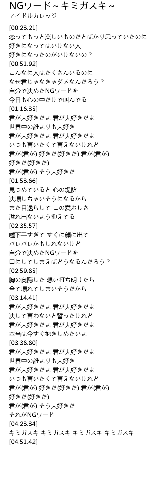 | [04:46.26] | キミガスキ キミガスキ キミガスキ キミガスキ |
