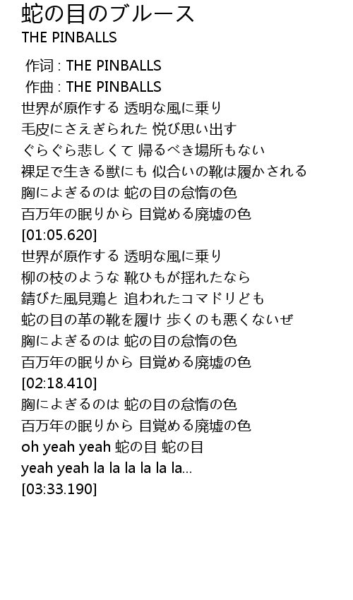 | [00:01.000] | zuo qu : THE PINBALLS |