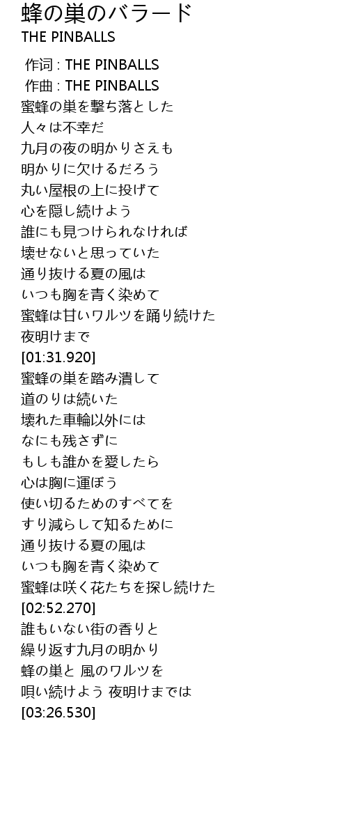 作词 : THE PINBALLS |
