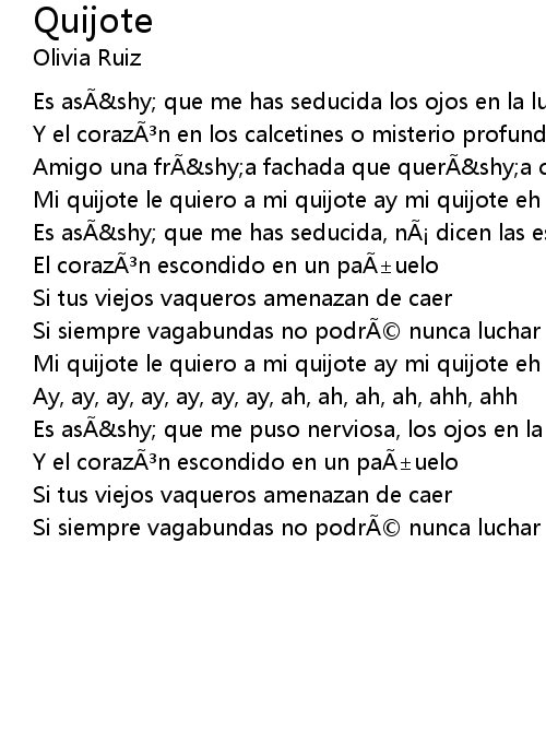 | Mi quijote le quiero a mi quijote ay mi quijote eh eh eh | |