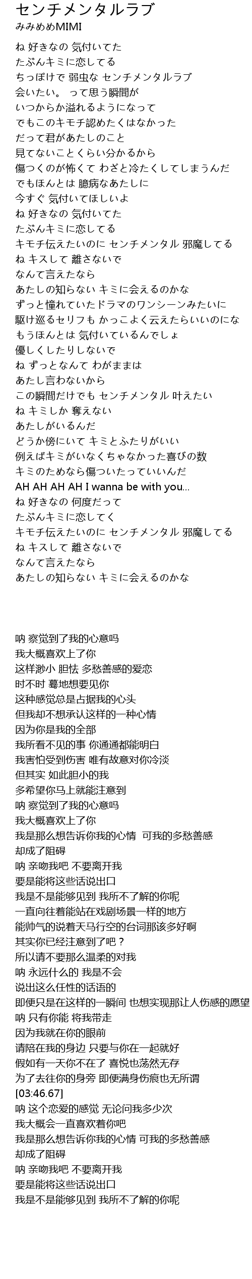 | [02:53.68] | この瞬間だけでも センチメンタル 叶えたい |