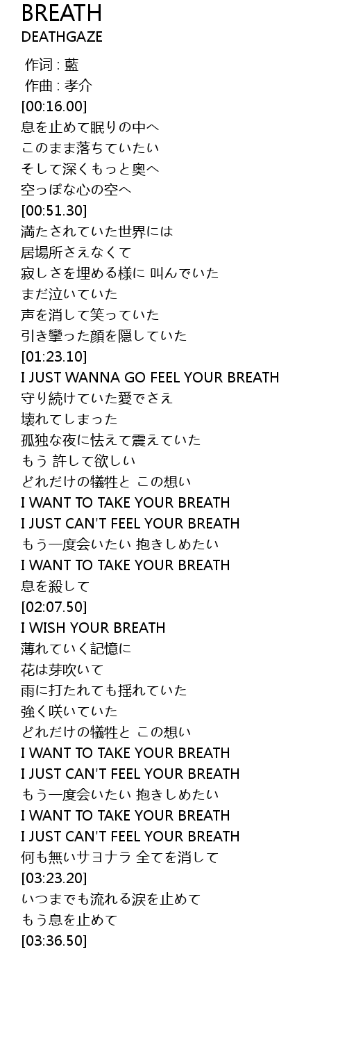 | [03:00.10] | I WANT TO TAKE YOUR BREATH |