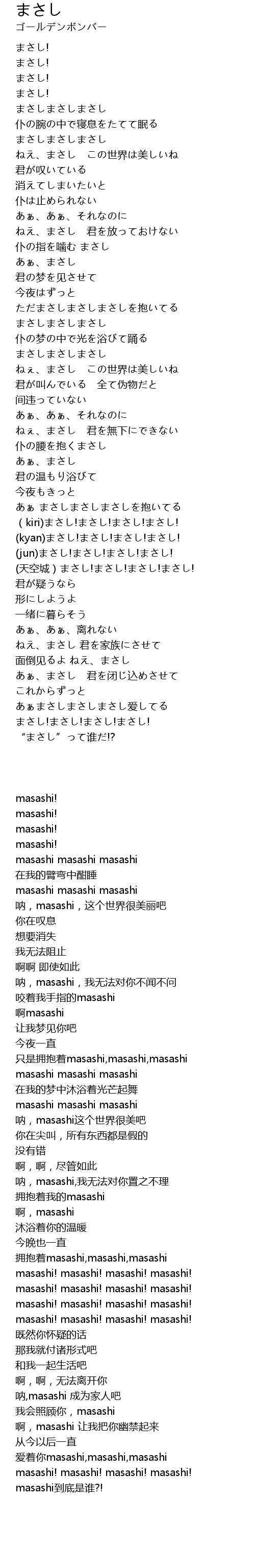 | [02:14.22] | あぁ まさしまさしまさしを抱いてる |