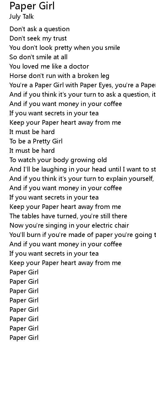 You're a Paper Girl with Paper Eyes, you're a Paper Crop |