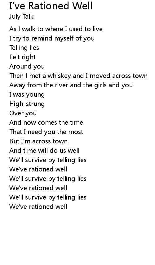 | Song | I've Rationed Well |