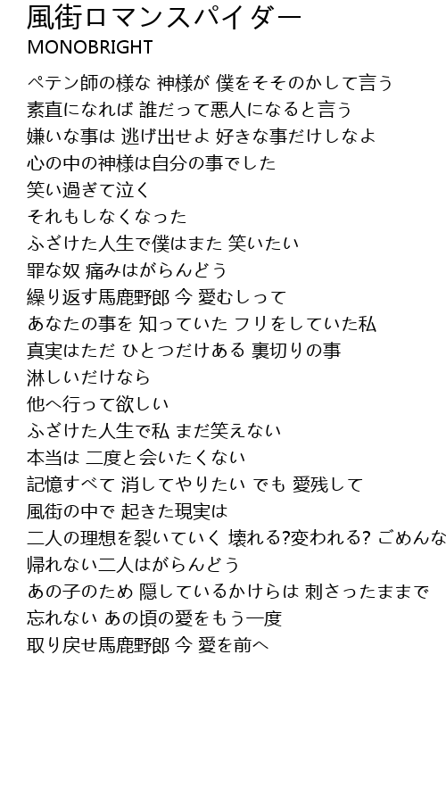 | Song | 風街ロマンスパイダー |
