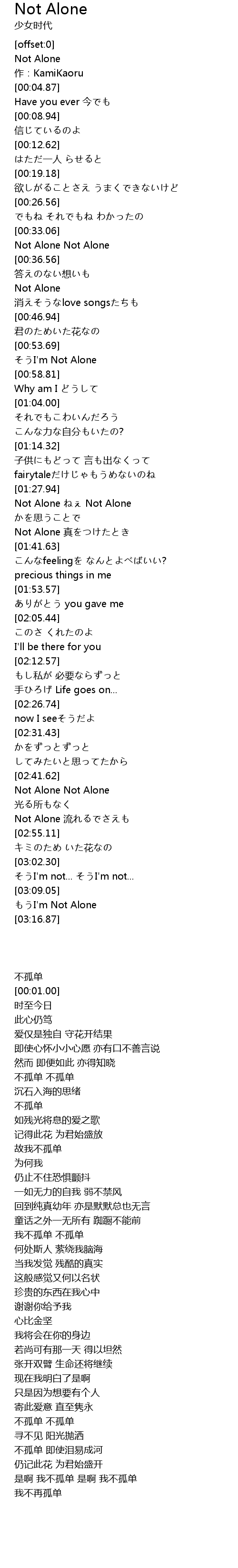 | [02:49.37] | Not Alone 流れるでさえも |