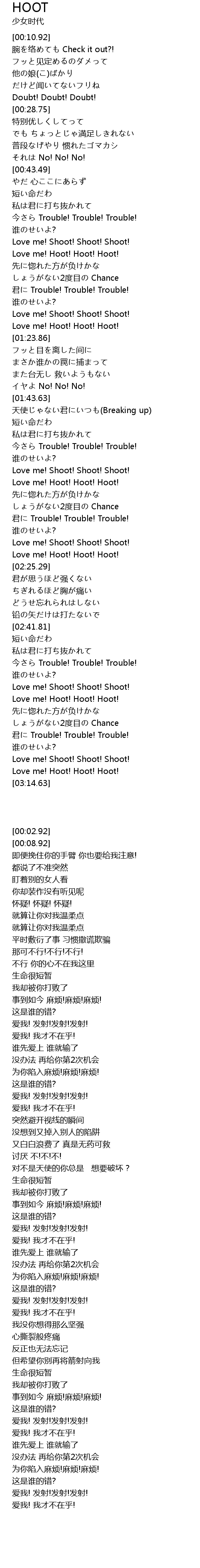 | [02:55.51] | Love me! Shoot! Shoot! Shoot! |