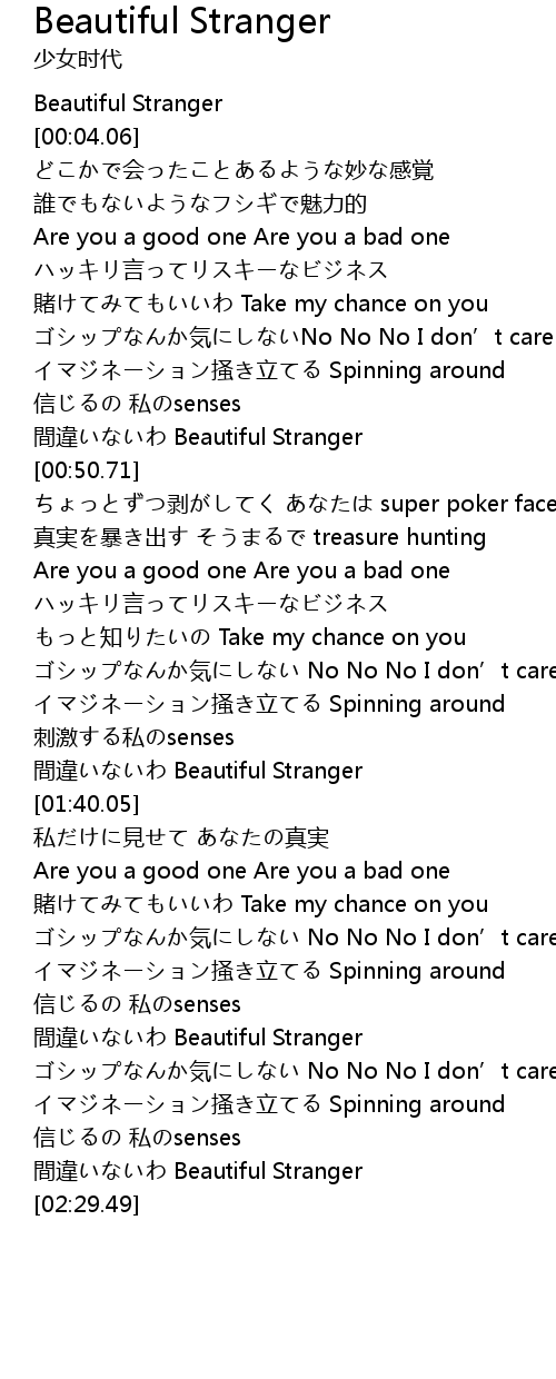 | [02:24.78] | 間違いないわ Beautiful Stranger |
