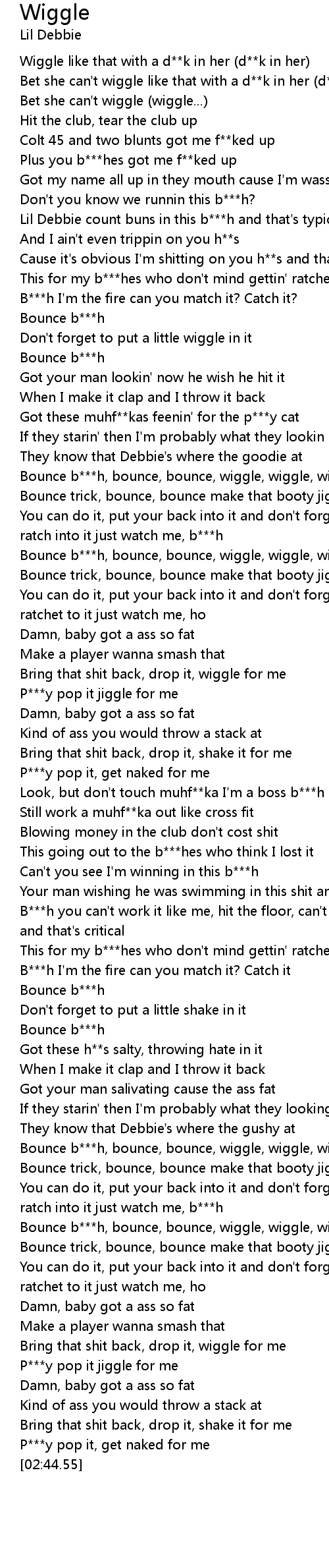 Bounce b***h, bounce, bounce, wiggle, wiggle, wiggle |