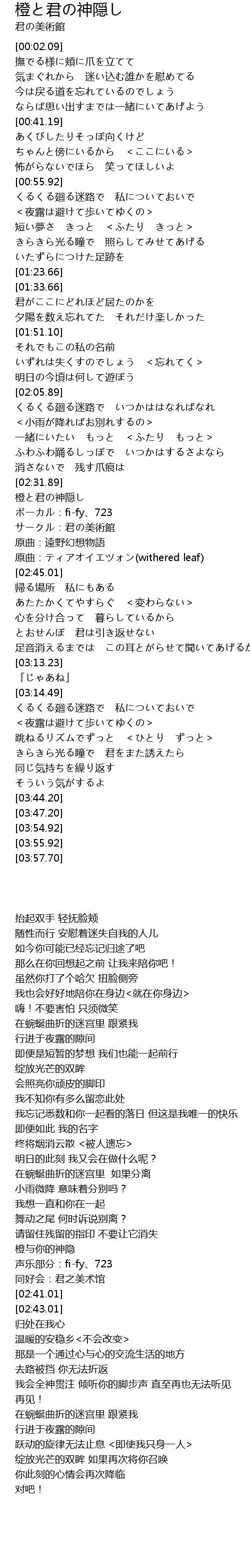| [02:43.01] | 原曲:ティアオイエツォン(withered leaf) |