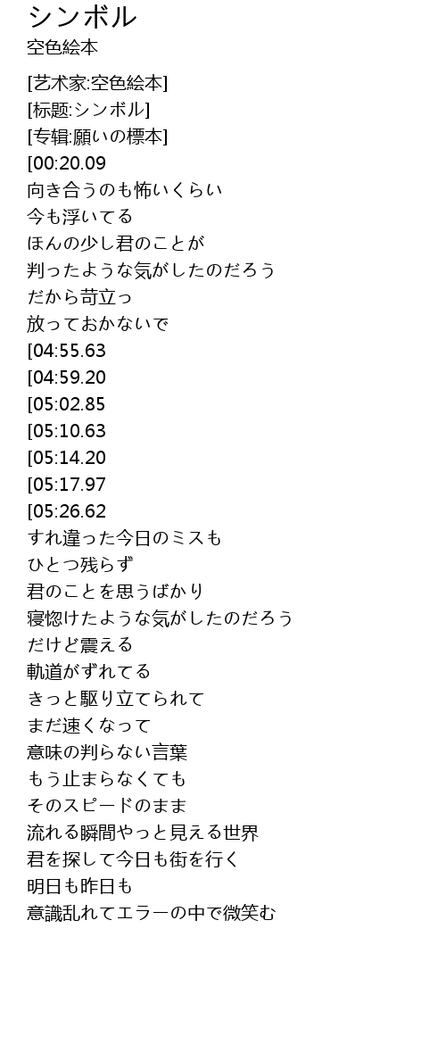 | [01:31.39][05:10.63] | 空を掴むようでも |
