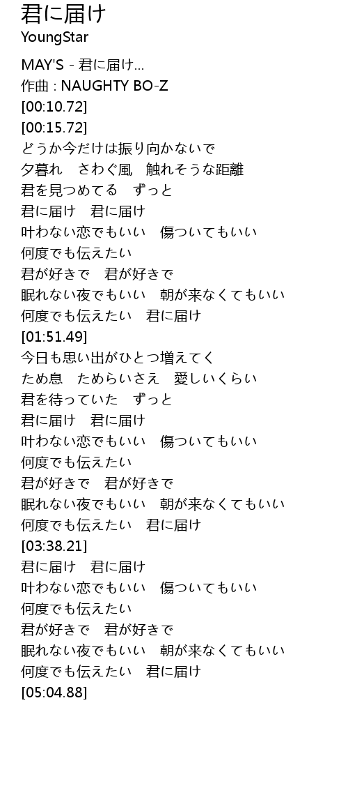 | [04:53.68] | 何度でも伝えたい 君に届け |
