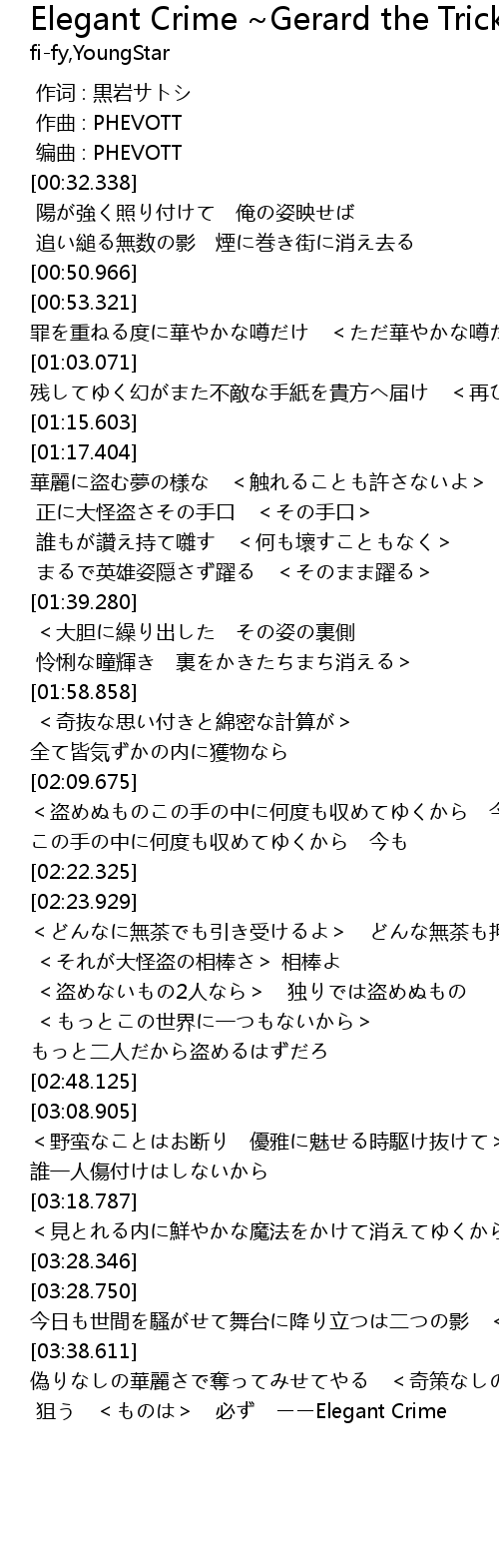 | [03:46.492] | 狙う <ものは> 必ず ーーElegant Crime |