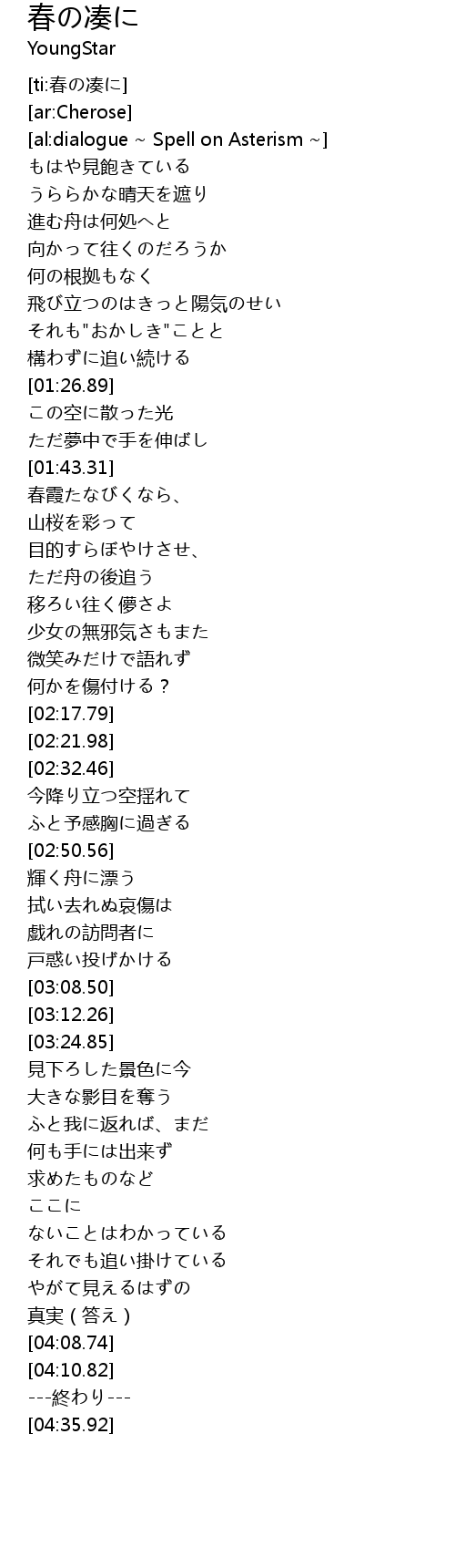 | [01:14.70] | 飛び立つのはきっと陽気のせい |