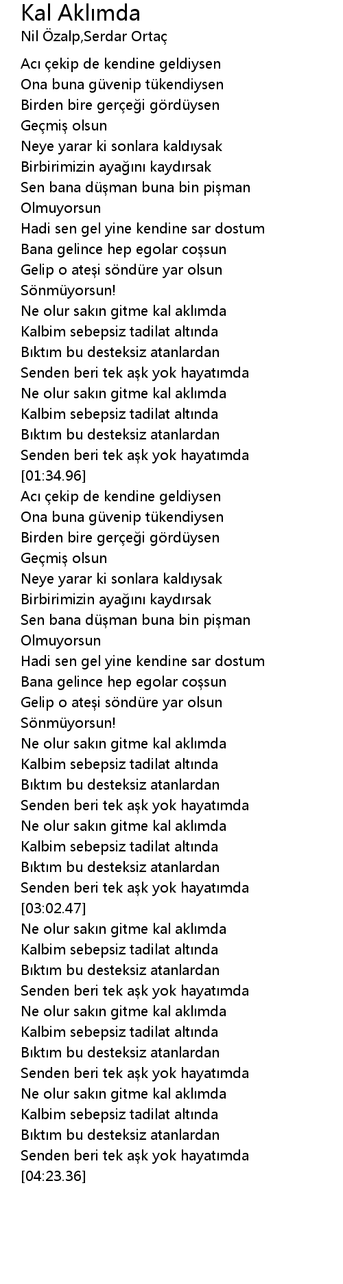 | [03:25.81] | Ne olur sak n gitme kal akl mda |