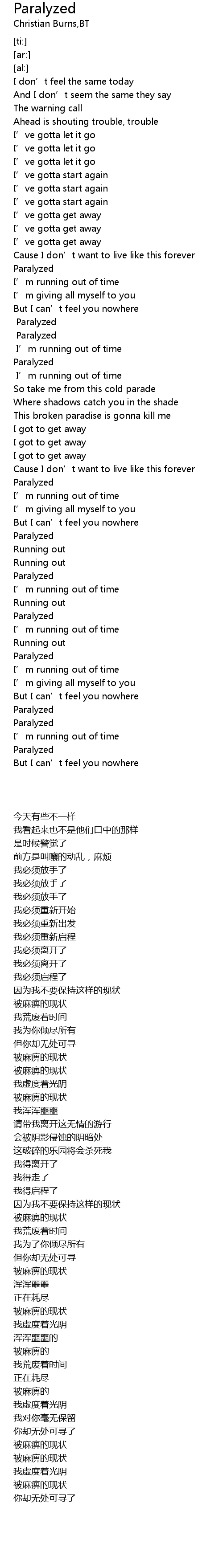| [02:29.34] | Paralyzed |