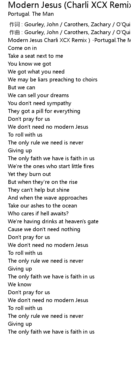 | [00:00.521] | Modern Jesus Charli XCX Remix)-Portugal.The Man |