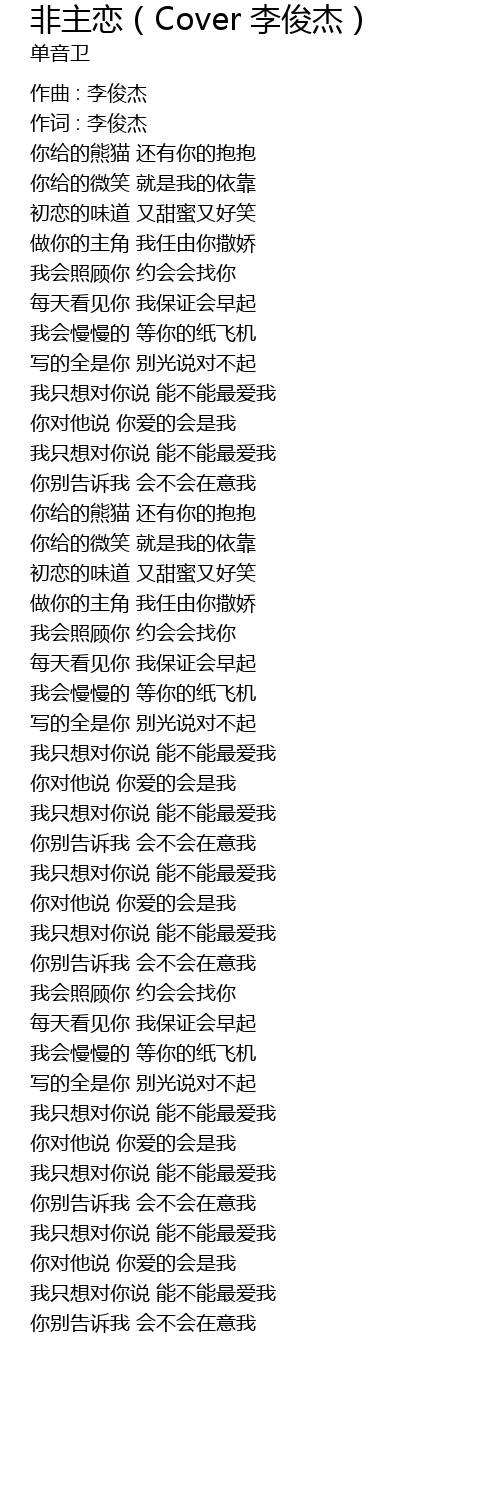 | wǒ zhǐ xiǎng duì nǐ shuō néng bù néng zuì ài wǒ | |