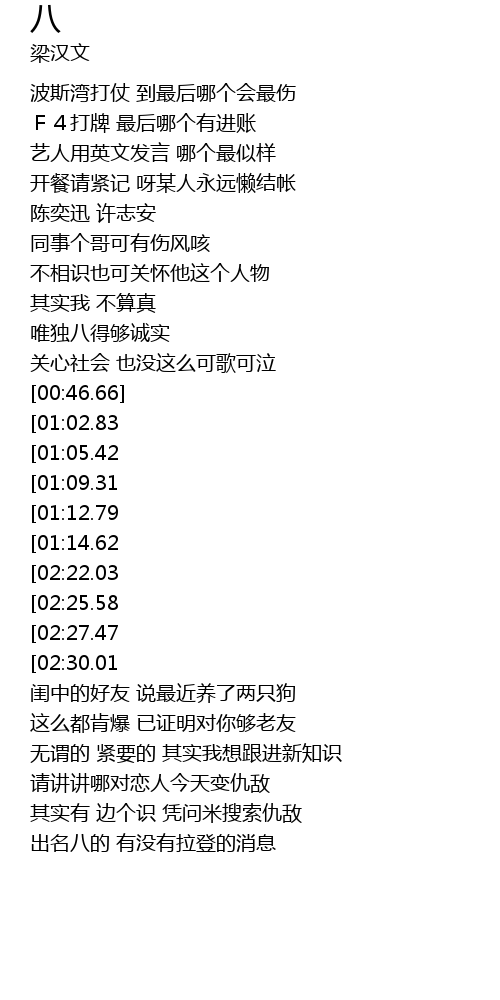 | [02:42.48][02:27.47][01:22.37] | 未八到真想八的算点 |