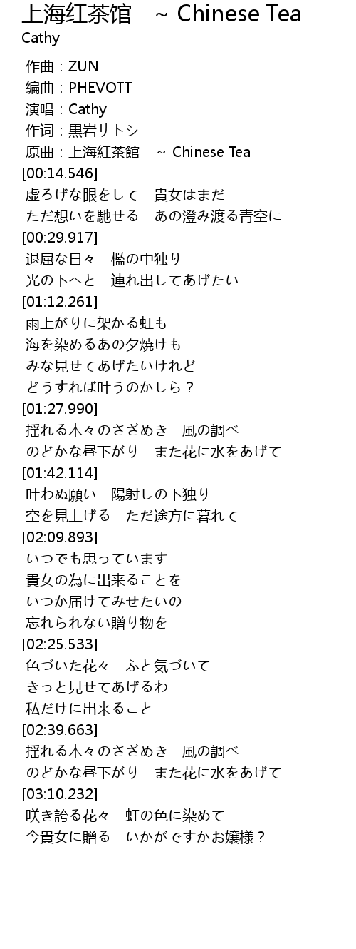 | [00:13.262] | 原曲:上海紅茶館 ~ Chinese Tea |