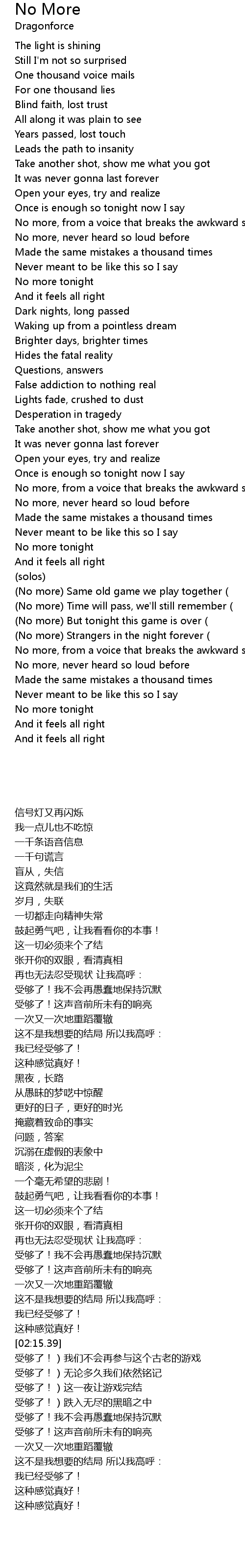 | [03:02.01] | No more But tonight this game is over |