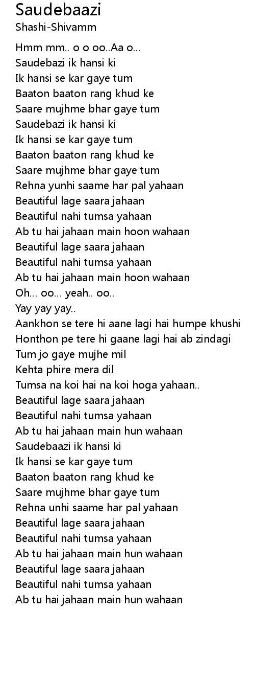 | [00:45.50] | Beautiful nahi tumsa yahaan |