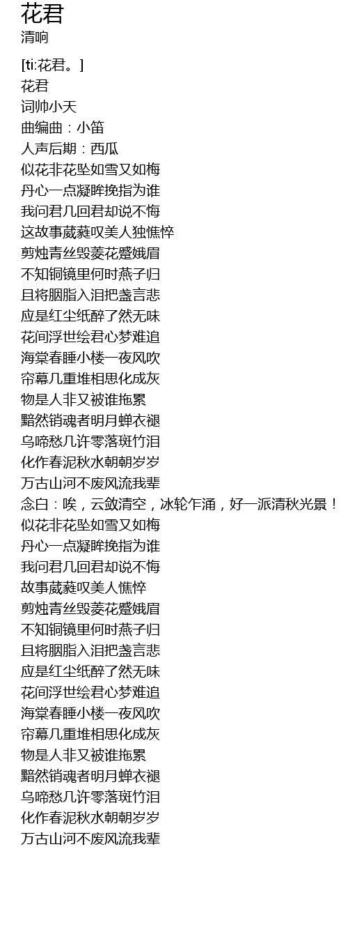 | [02:26.859] | 似花非花坠如雪又如梅 |