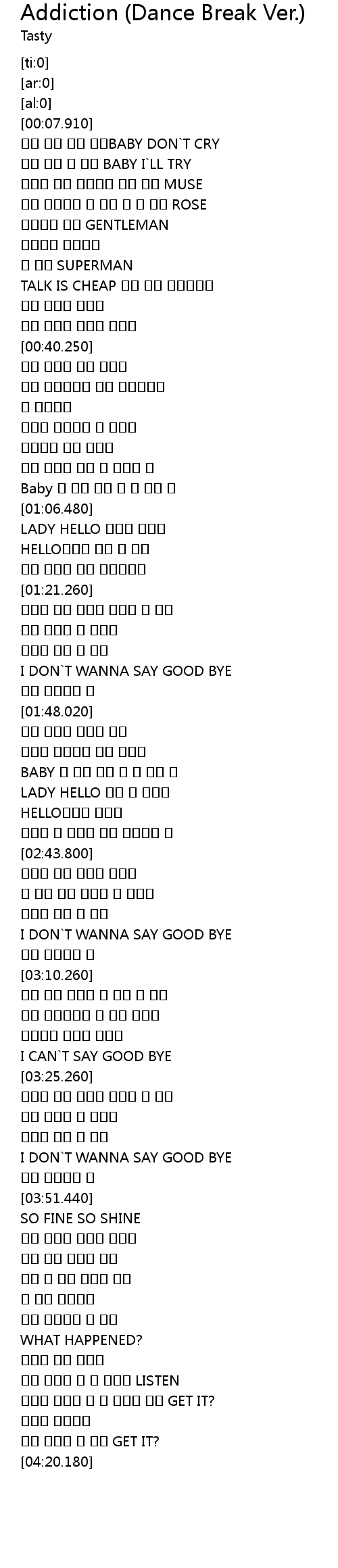 | [01:40.200] | I DON T WANNA SAY GOOD BYE |
